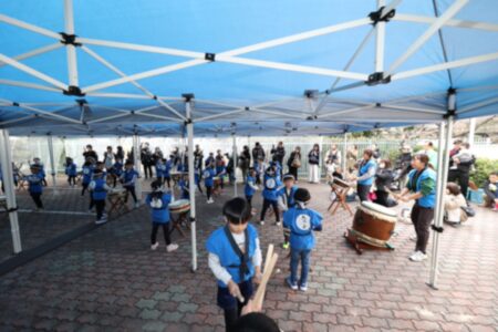 当日雨が降っても子どもたちが太鼓を打てるようにとテントをはってくださったり、子どもたちが風邪をひいてはいけないとストーブや風よけのビニールまでご用意いただきました。